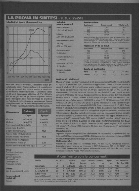 biso374 ha scritto:ho da qualche parte un motociclismo con la prova della sv 650 s k3 o k4 (non ricordo bene), in cui i cavalli rilevati alla ruota erano 60 e qualcosa...