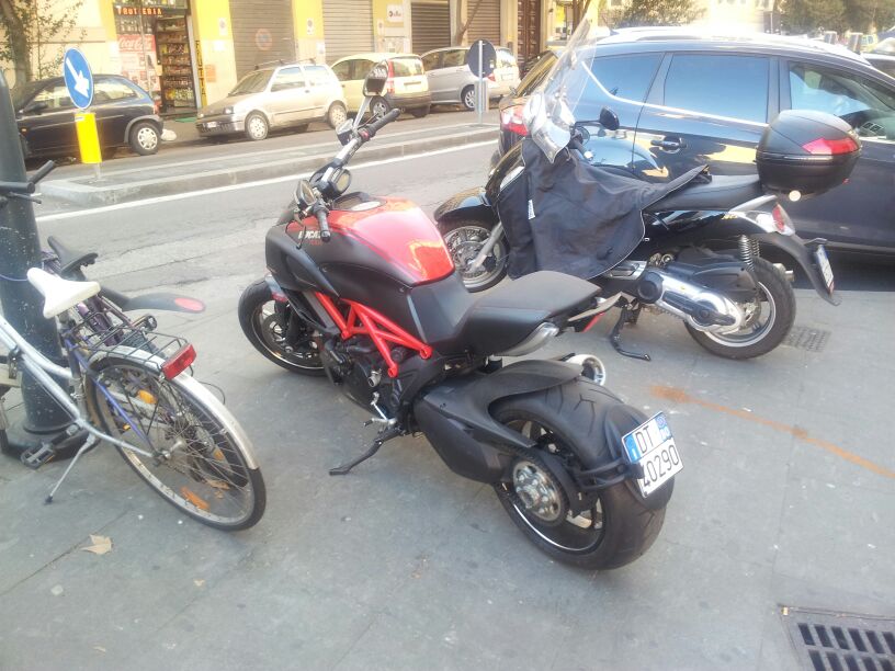La vedo tutti i giorni che vado al lavoro, deve essere di un carabiniere, sta sempre parcheggiata vicino alla caserma di via Mameli, ovviamente davanti al bar ... che altro vuoi farci, con una Diavel?Pitchblack ha scritto: No caro l'abbiamo vista ieri a Trastevere!!!!
