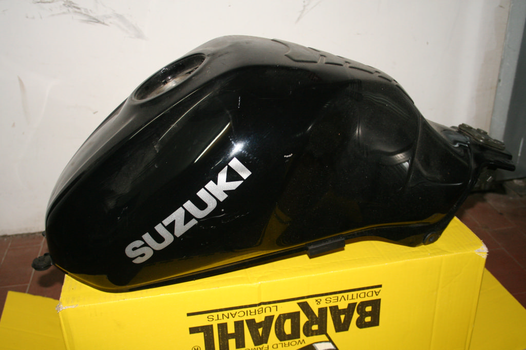 condizioni: il serbatoio è caduto e riparato. è da riverniciare ma è già stato sbozzato e stuccato. come serbatoio da pista è pronto da verniciare.. per la perfezione un carrozziere dovrà invece rifinirlo. nessun segno di ruggine al suo interno.