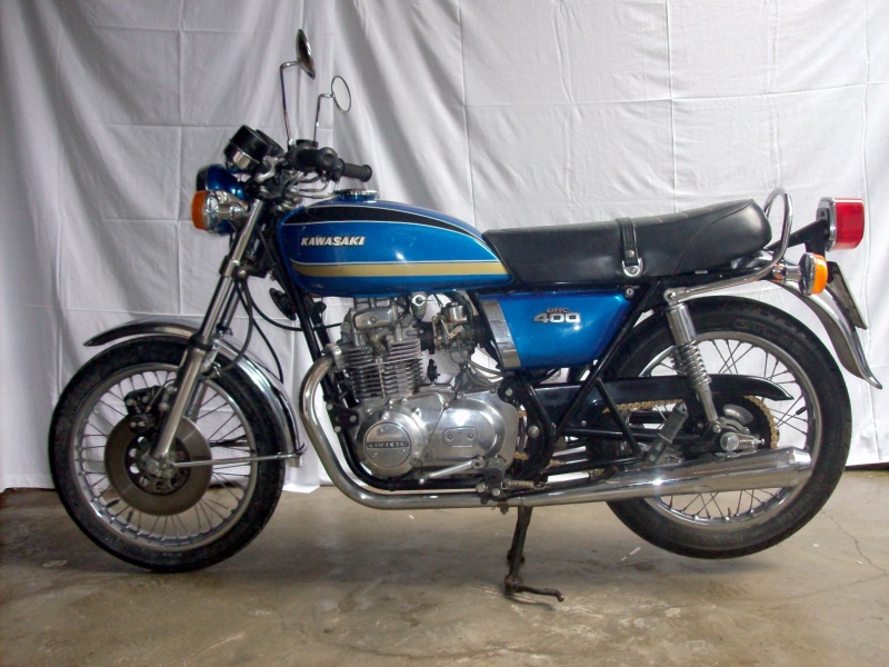 La moto è una Kawasaki kz 400 ohc del 75, quindi la primissima versione, classico esempio di moto anni 70 ancora tutta originale compreso vernice e cromature.