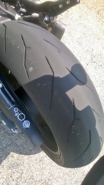 La gomma iniza a essere usurata, ma ancora c'e', non per pistare, ma va ancora benissimo, mi sto divertendo ad entrare in curva e spalacare in uscita, facendo bei deraponi di potenza (con attenzione massima ovviamente)