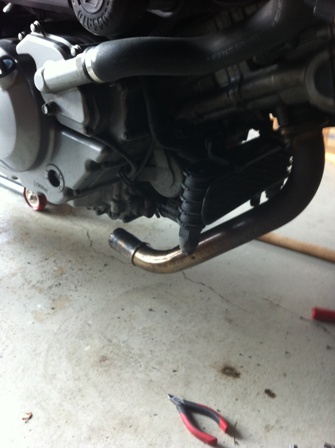 Non ho ancora tirato la moto in quinta a 10000 giri per vedere cosa succede agli alti, ma in ogni caso non è la zona di funzionamento che mi interessa (preferisco più coppia ai bassi durante le mie scorrazzate sui passi di montagna, tutte curve). Fra l'altro ho guardato i giri incredibili che facevano i fumi con lo scarico originale (da vedere per credere!!) e adesso mi spiego il perchè era come avere un grosso tappo sul di dietro!! Adesso invece i fumi partono dal cilindro, vanno dritti lungo i tubo, si affiancano nella Y e vanno in parallelo allo scarico, riducendo così le perdite e quindi guadagnando qualcosina.