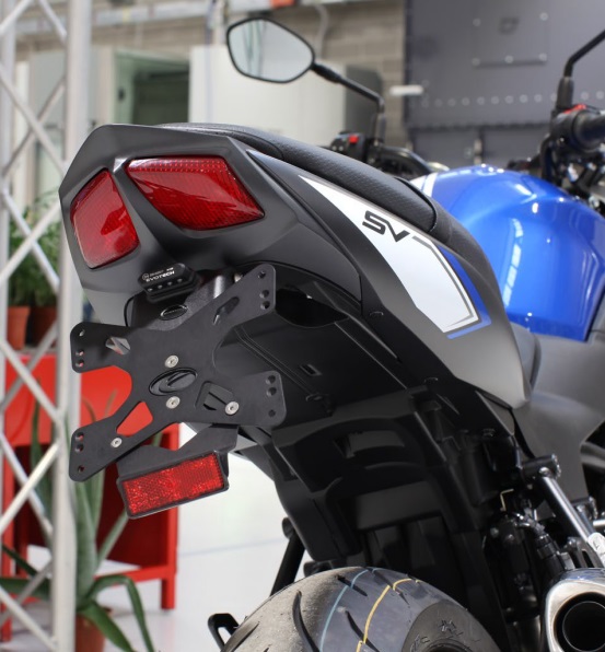 Quello in foto è della Barracuda, io lo montai sulla SV della mia compagna e come vedi ha la sua piccola staffa cha sparisce dieteo la targa e che puoi ancorare ai fori inferiori della targa stessa ed ha già l'inclinazione per risultare dritto una volta montato.