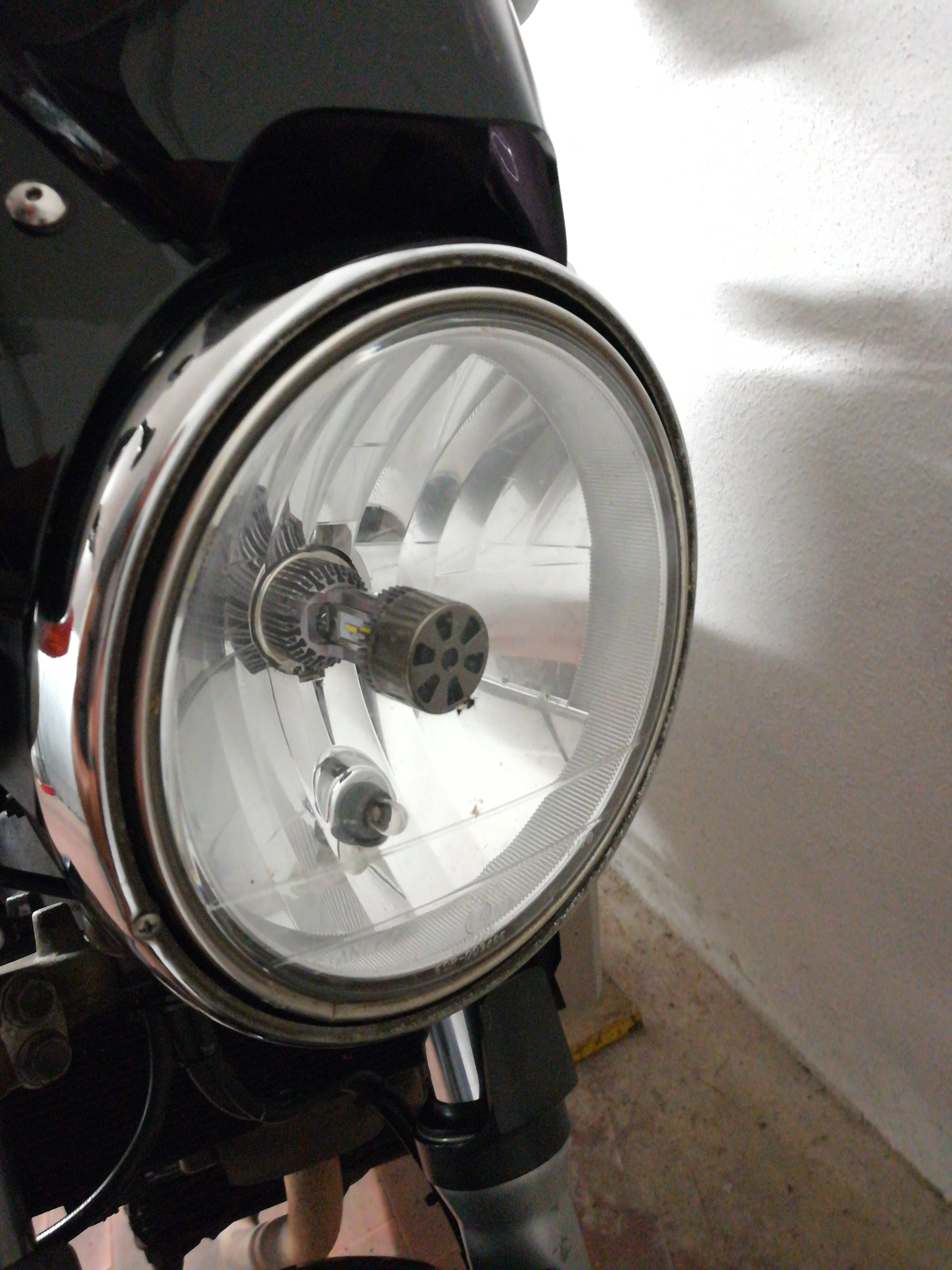 ieri ho installato sul faro della mia SV una lampada a led H4 di quelle con la ventolina posta sulla sommità della lampada per "ottimizzare" gli spazi, diciamo così.