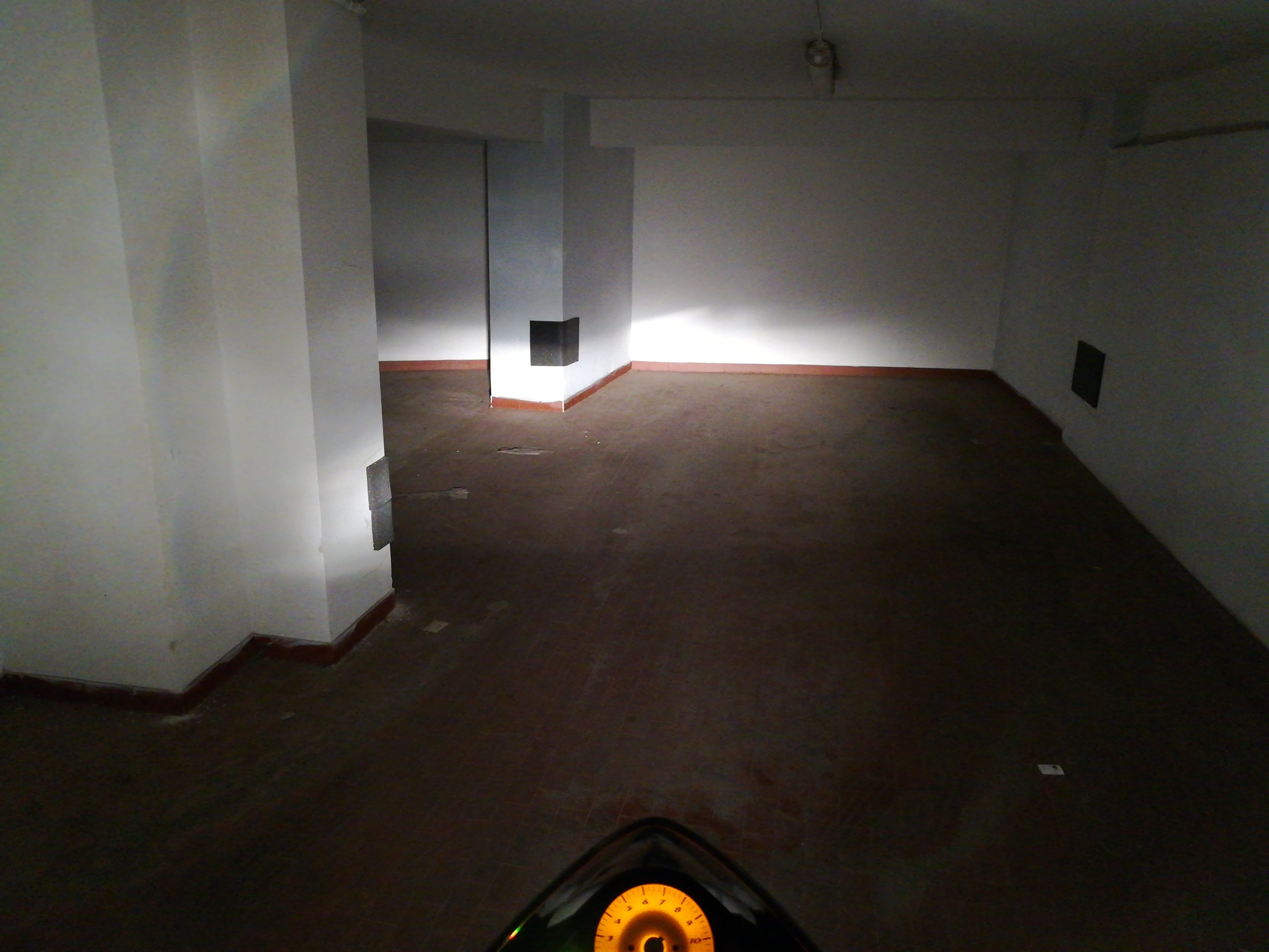 Luce anabbagliante molto, molto, più intensa e diffusa del fascio stretto della lampada a filamento, luce abbagliante leggermente meno profonda, a parità di regolazione dell'altezza del faro (fascio inclinato del 10% a partire dall'altezza del faro con me in sella).