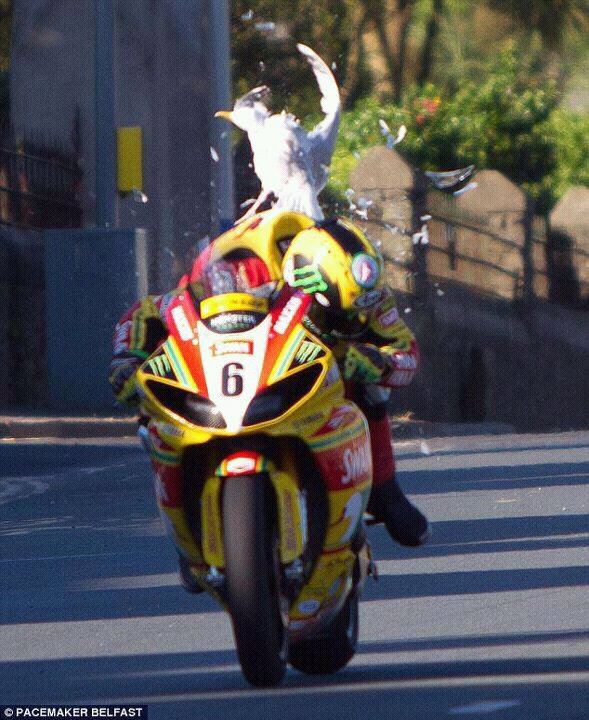 io una volta sulla saponetta un piccione che era a terra che zampettava, mi si è alzato a centro curva impattando sulla saponetta, tutto spappolato, bleah che schifo
