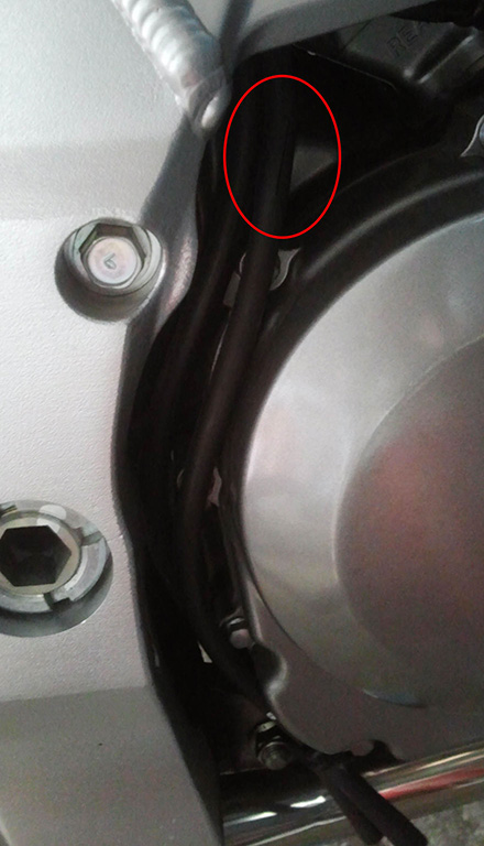 Ho notato un taglio verticale su uno dei due tubicini che scendono tra telaio e motore e terminano nel vuoto (immagino siano tubi di sfiato/scolo).