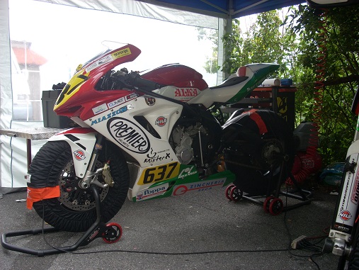 Ha messo insieme pezzi usati di varie moto. Principalmente un sxv 550 con avantreno di un 125 (mito?) carene ducati 999 e via in gara!