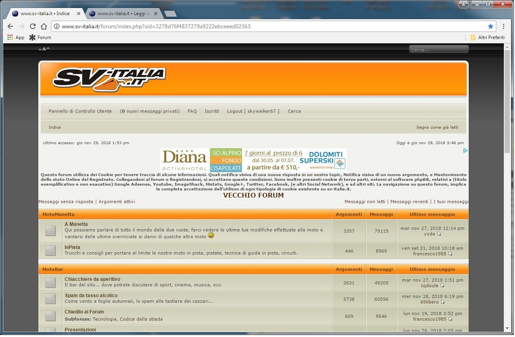 Poi ho provato a selezionare il profilo oldforum, e da quel momento tutto quello che vedo accedendo al forum é quanto sotto.