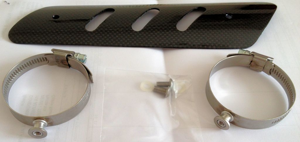 Ciao, ho avuto il tuo stesso problema ed ho montato una protezione in carbonio saldando 2 dadi inox direttamente sul collettore.